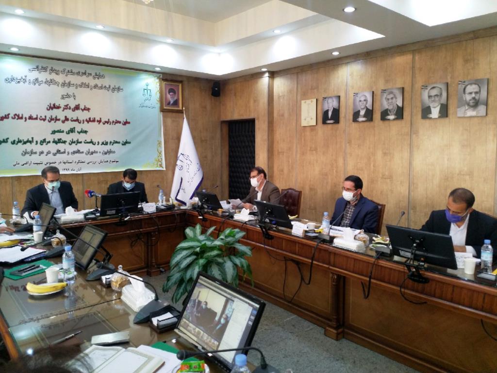 سومین نشست مشترک مسعود منصور معاون وزیر جهاد کشاورزی و رییس سازمان جنگلها، مراتع و آبخیزداری کشور و ذبیح الله خداییان معاون رییس قوه قضاییه و رییس سازمان ثبت اسناد و املاک کشور صبح امروز سه شنبه بیستم آبان ماه پیرامون بررسی عملکرد واحدهای استانی منابعطبیعی و ثبت اسناد در خصوص کاداستر اراضی ملی و صدور سند در سازمان ثبت اسناد برگزار شد.
