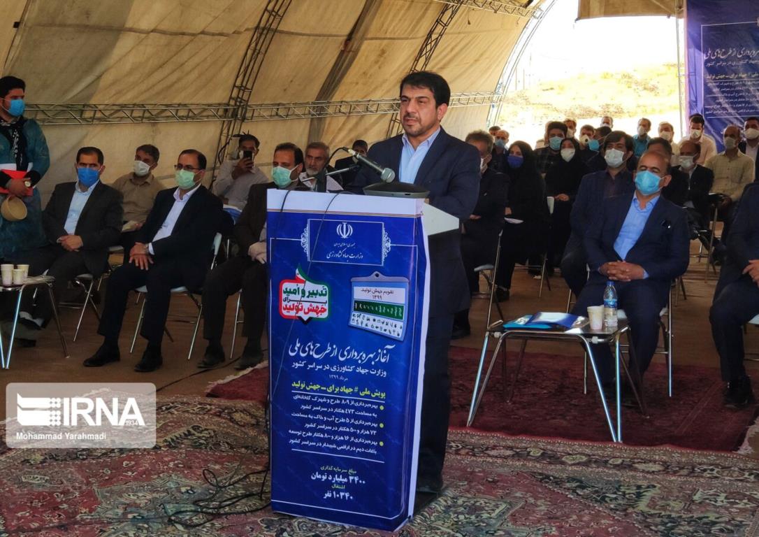 گفتنی است امروز طی مراسمی در استانهای یزد، هرمزگان و لرستان که به صورت ویدئوکنفرانسی برگزار شد، در راستای پویش ملی جهاد برای جهش تولید، بهره برداری از ۸۰۹ طرح و شهرک گلخانهای به مساحت ۴۷۳ هکتار، بهره برداری از ۵ طرح زیربنایی آب و خاک در مساحت ۷۳ هزار و ۵۰۰ هکتار و بهرهبرداری از ۱۶ هزار و ۸۰۰ هکتار طرح توسعه باغات دیم در اراضی شیبدار در سراسر کشور با سرمایهگذاری ۳۴۰۰ میلیارد تومان و اشتغالزایی ۱۰ هزار و ۳۴۰ نفر با فرمان دکتر حسن روحانی رئیس جمهوری آغاز شد.