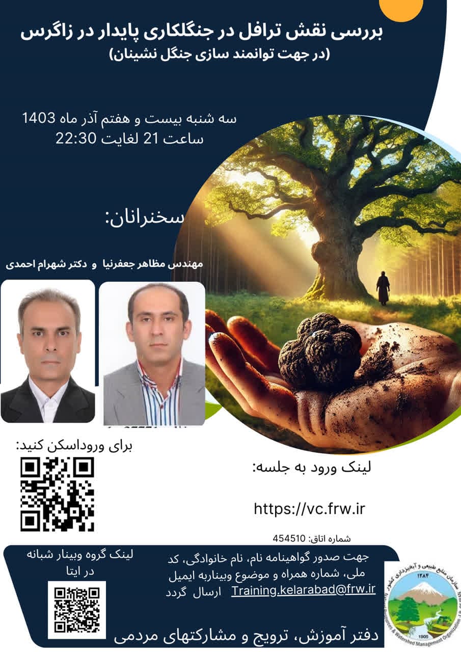 دفتـر آموزش، تـرویج و مشـارکتهای مـردمی سازمـان منابع طبیعی و آبخیـزداری کشـور وبینار بررسی نقش ترافل در جنگل کاری پایدار منطقه زاگرس را در جهت توانمندسازی جنگل نشینان برگزار می کنـد