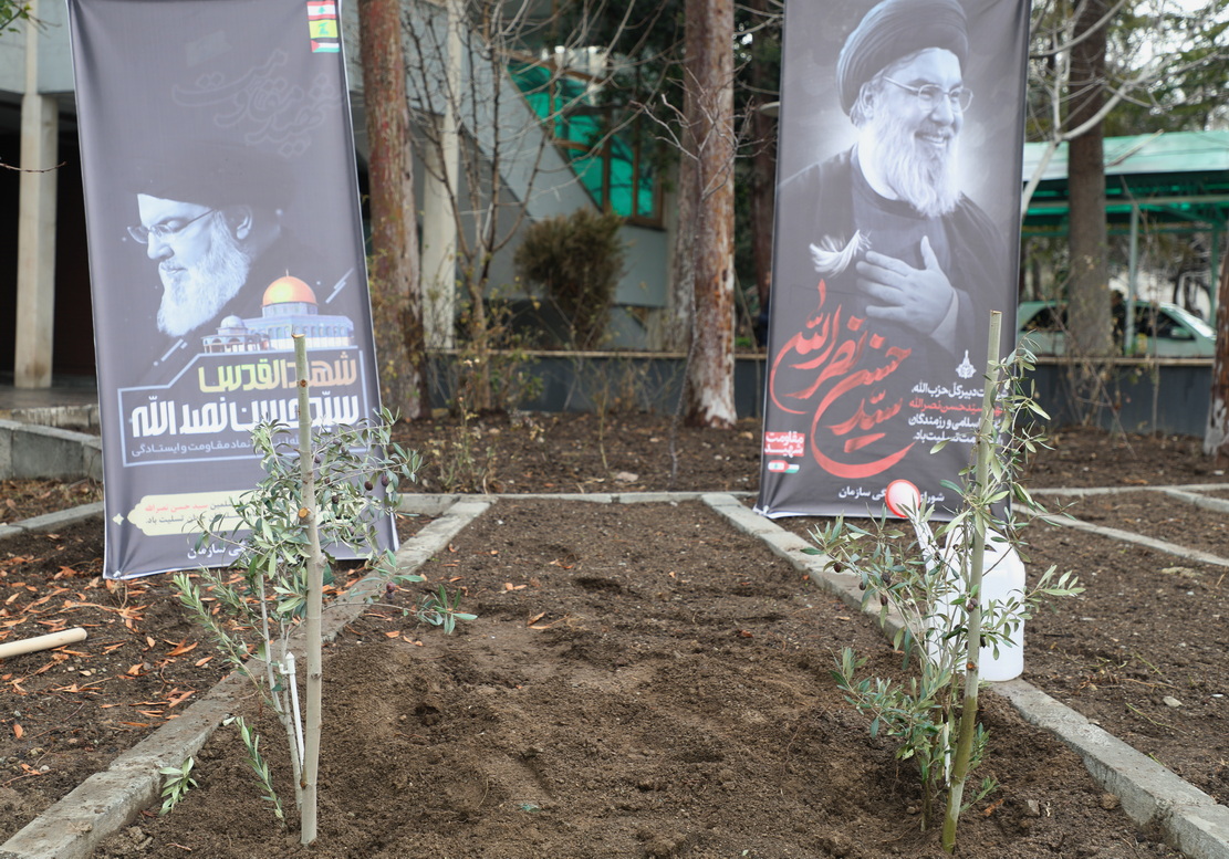 آیین غرس دو اصله نهال زیتون به نیت شهید سیدحسن نصرالله و شهید سیدهاشم صفی الدین امروز - یکشنبه ۵ اسفند ۱۴۰۳ - در محوطه سازمان منابع طبیعی و آبخیزداری کشور به نیت این دو شهید مقاومت برگزار شد.
