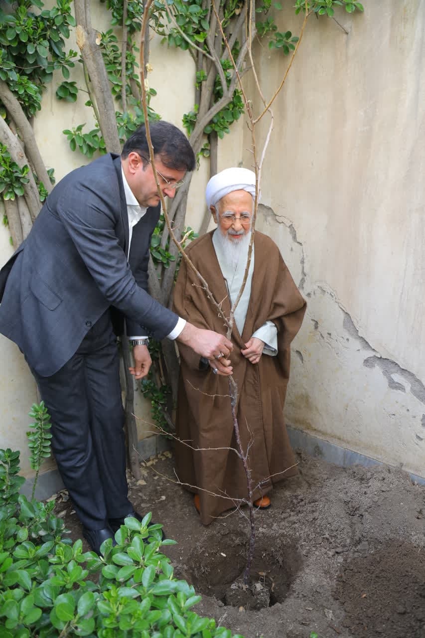 حضرت آیت الله العظمی جوادی آملی، همزمان با هفته منابع طبیعی و ایام درختکاری، طی مراسمی با حضور دکتر علی تیموری؛ رییس سازمان منابع طبیعی و آبخیزداری کشور یک اصله نهال غرس نمودند.